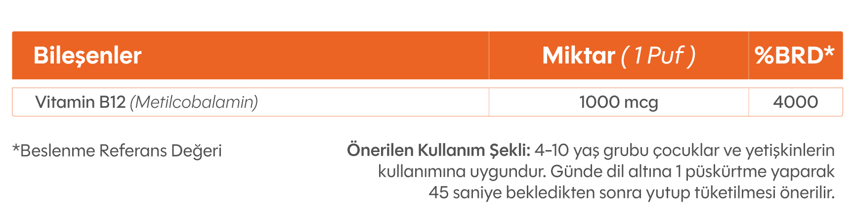 Suda Vitamin B12 içerisinde bulunan B12 vitamini sayesinde bağışıklık sisteminin normal fonksiyonuna, yorgunluğun ve bitkinliğin azalmasına katkıda bulunur.