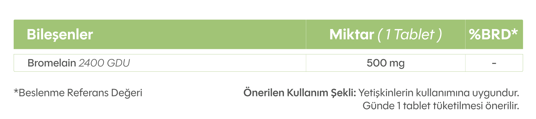 Suda Bromelain, ananastan elde edilen ve proteinleri sindiren enzim olan bromelain içeren yetişkinler için geliştirilmiş bir gıda takviyesidir.