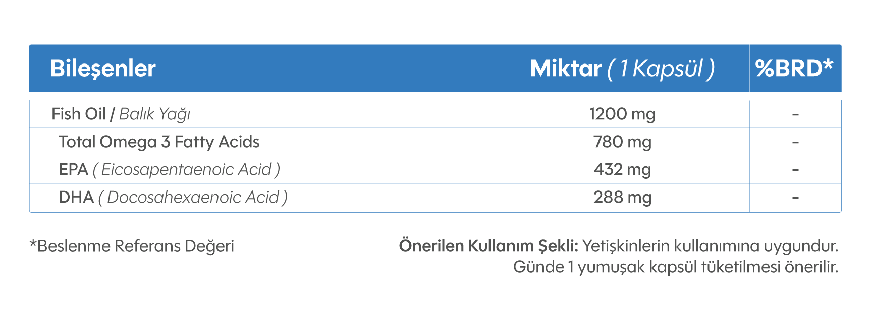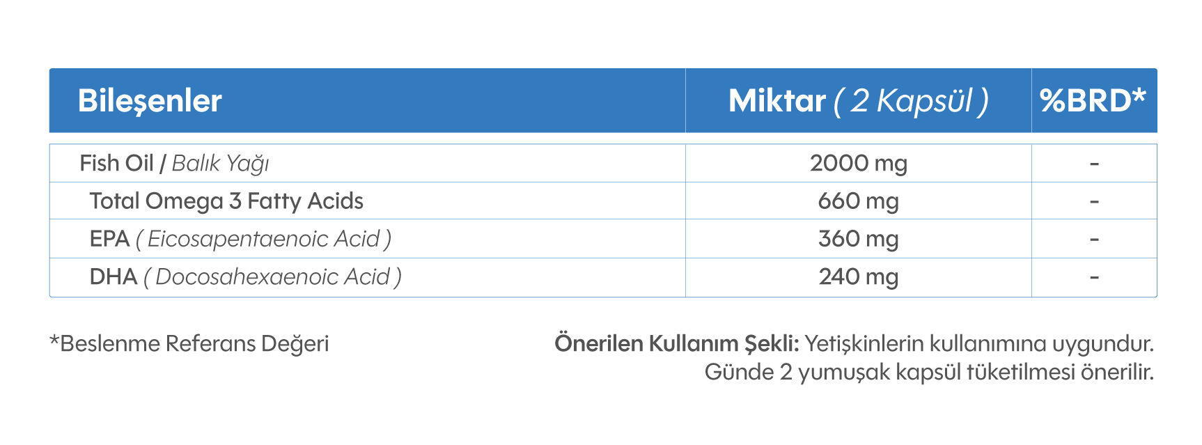 Suda Omegabig içerisinde EPA ve DHA omega-3 yağ asitlerini bulunduran yetişkinler için geliştirilmiş bir balık yağı takviyesidir.