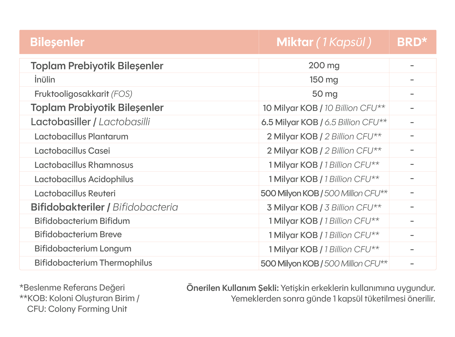 Suda Menbiotic Men’s Daily Care içerisinde prebiyotik ve toplam 10 milyar probiyotik içeren yetişkin erkekler için geliştirilmiş bir gıda takviyesidir.