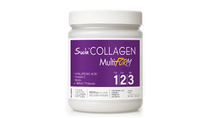 Suda Multiform Powder Aromasız içerisinde tip I-II-III kollajen, hyaluronik asit, biotin ve 1 milyar probiyotik içeren aromasız yetişkinler için geliştirilmiş bir gıda takviyesidir.