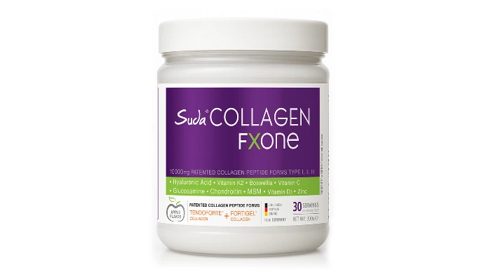 Suda Multiform FXONE Apple Powder içerisinde tip I-II-III kolajen, hyaluronik asit, glukozamin, kondroitin, msm, boswella, vitamin K2 ve vitamin D3 içeren elma aromalı yetişkinler için geliştirilmiş bir gıda takviyesidir.